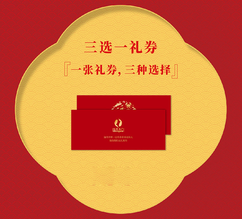 時(shí)隔一年,東沃再次推出“三選一禮券”,一張禮券,三種產(chǎn)品任選??蛇x產(chǎn)品涵蓋:國產(chǎn)海鮮、佛跳墻、遼刺參、大閘蟹(時(shí)令產(chǎn)品)、海鮮干貨。多樣化的產(chǎn)品選擇,讓送禮更顯價(jià)值。